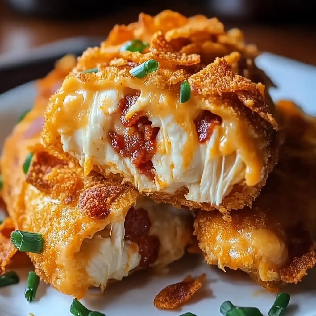 Cheesy Bacon Doritos Chicken is a flavor-packed, crispy, and cheesy dish that combines the crunch of Doritos with the savory taste of bacon and chicken.