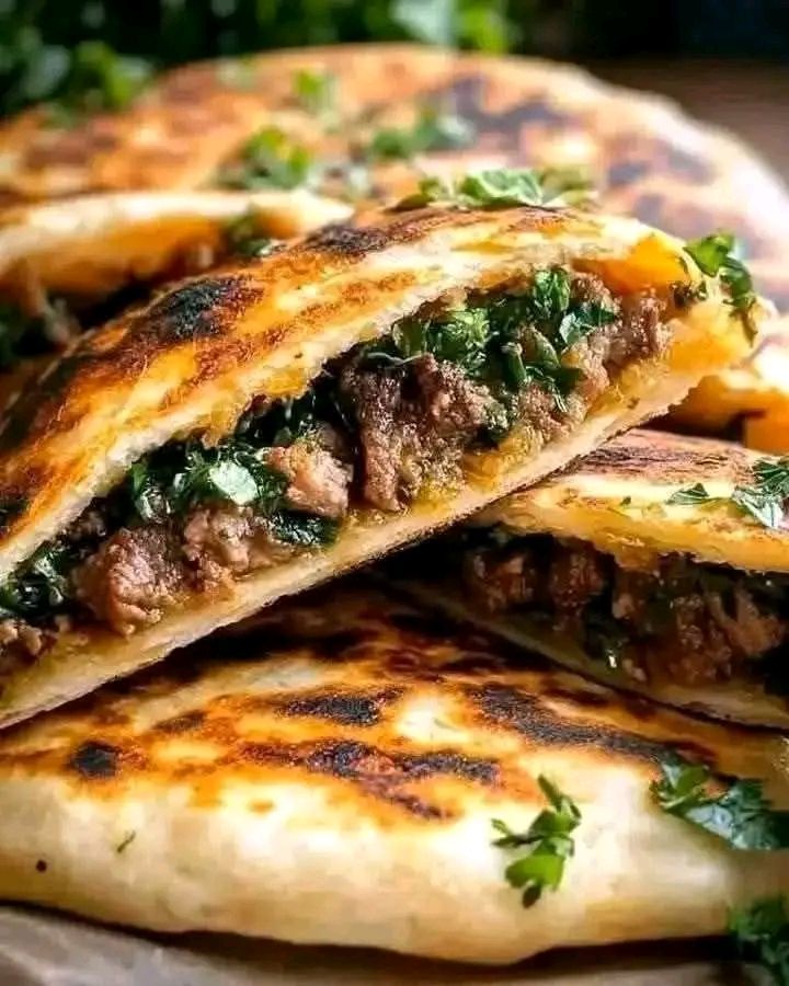Place stuffed pitas on the grill/skillet and cook for 3–4 minutes per side, pressing gently with a spatula, until the outside is golden and crispy and the meat is fully cooked. - Serve:
