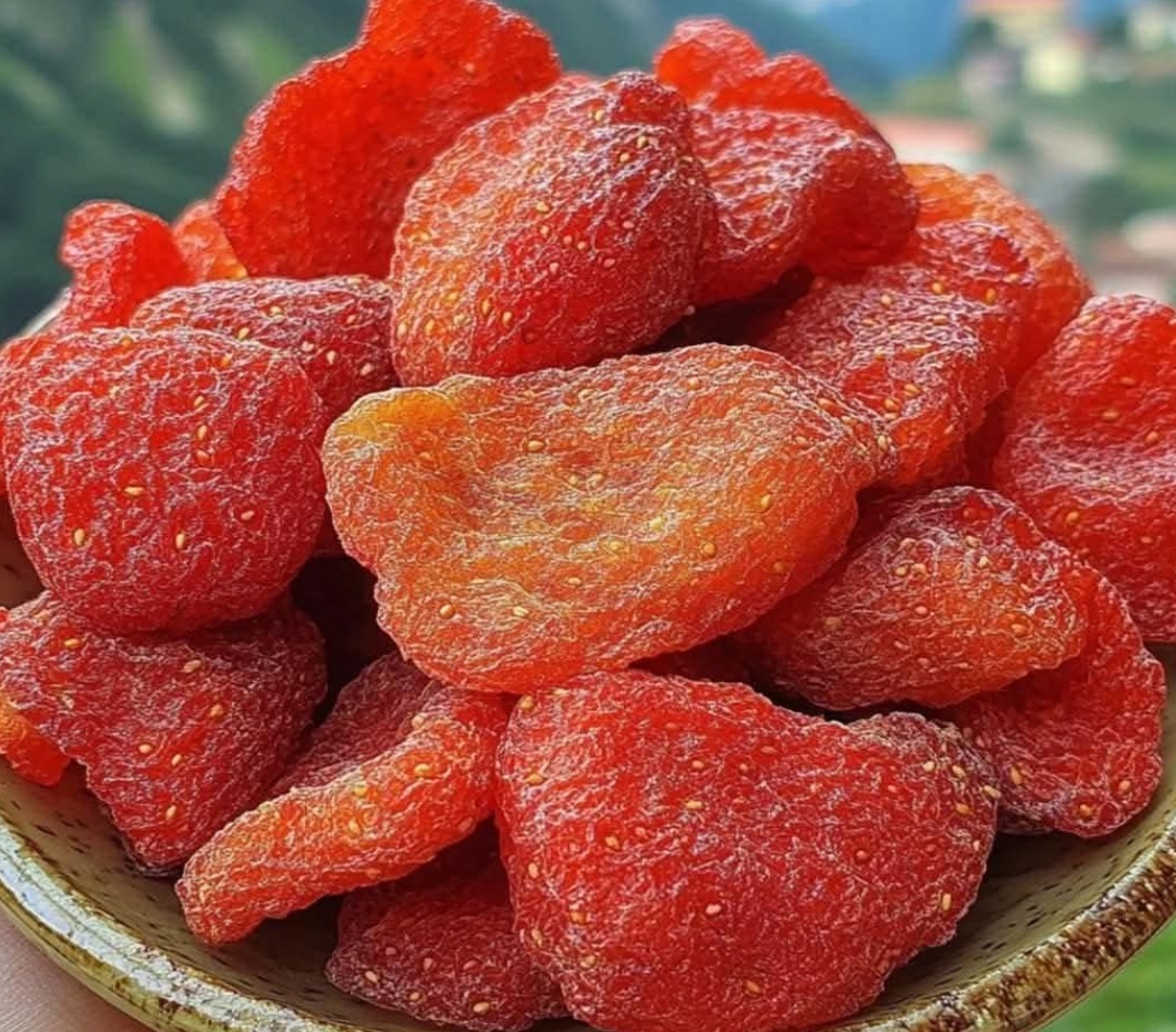 These oven-dried strawberries are like nature’s candy—sweet, slightly tangy, and chewy with concentrated strawberry flavor.