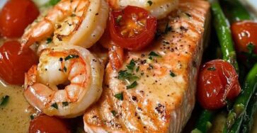 Introduction: This luxurious dish brings together tender, flaky salmon and juicy shrimp, all bathed in a rich white wine garlic…