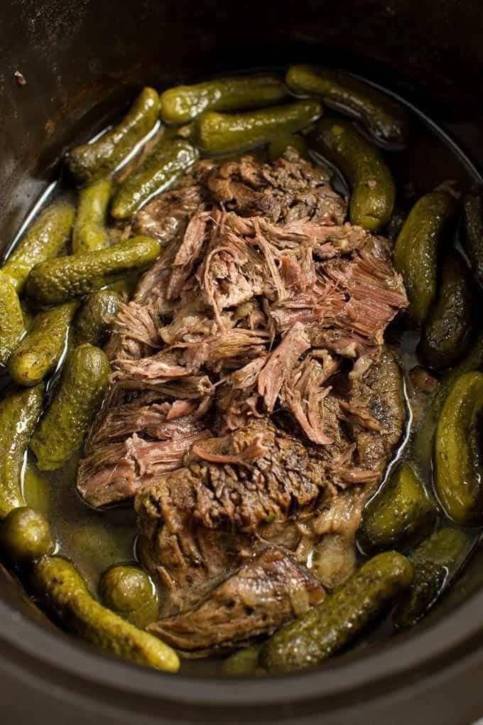 Juicy, tangy, and full of rich, slow-cooked flavor, this pot roast becomes fall-apart tender after hours in the crockpot. The dill pickles don’t dominate the flavor—they amplify it. The result is a beefy, savory roast with a hint of brightness that takes traditional pot roast to another level. It’s especially incredible served sandwich-style, piled high on a crusty roll with a bit of juice spooned on top.