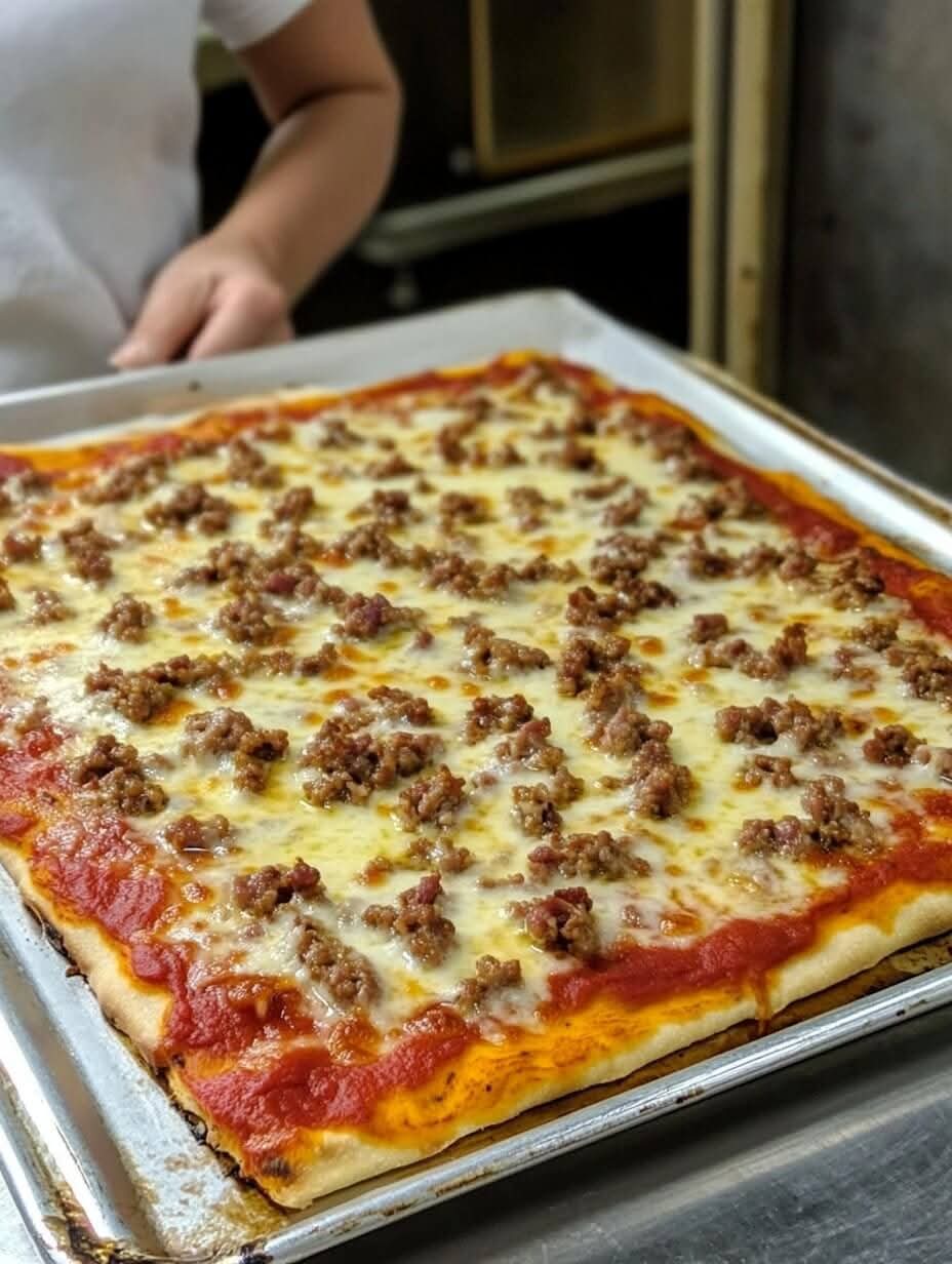 School Pizza is a beloved throwback to cafeteria lunches of the past. Known for its soft, slightly chewy crust, simple tomato sauce, and perfectly melted cheese, this square or rectangular pizza holds a special place in many hearts. It’s less about gourmet toppings and more about pure comfort food — simple, satisfying, and fun to make at home for a taste of nostalgia.