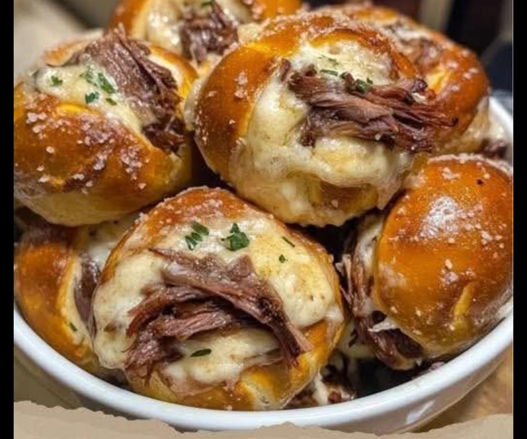 Each soft pretzel bite is stuffed with tender smoked brisket and creamy beer cheese, then baked to golden perfection.