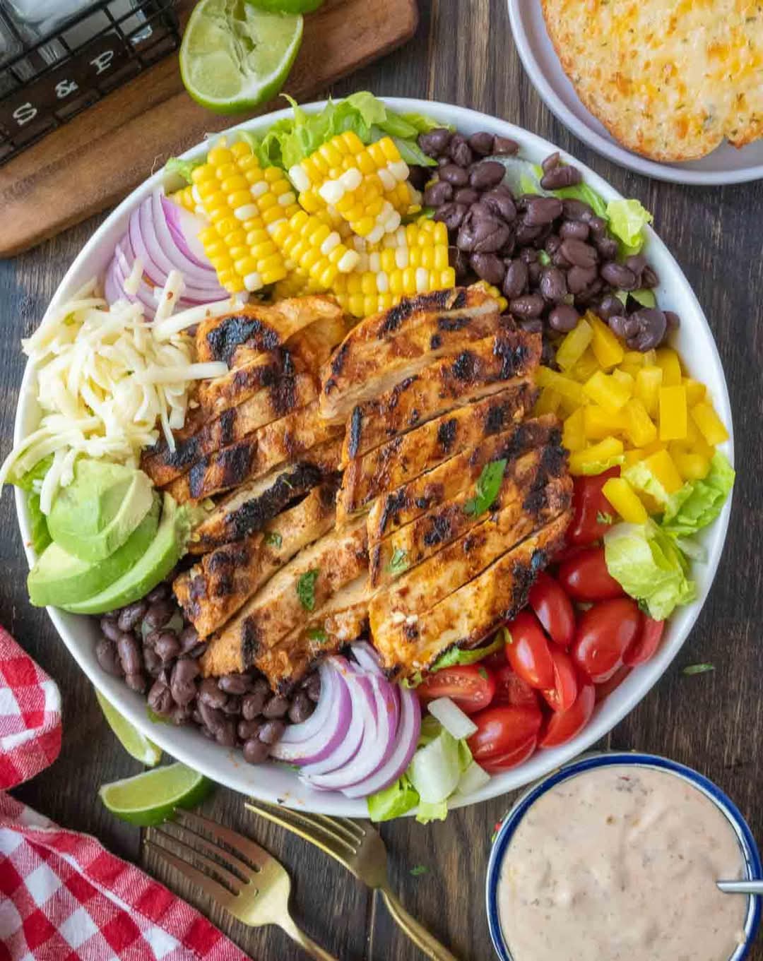 Featuring grilled or seasoned chicken, black beans, corn, crunchy tortilla strips, and a creamy dressing, it’s a satisfying and refreshing dish perfect for lunch, dinner, or meal prep. It’s hearty enough to stand alone yet light enough for warm weather eating.