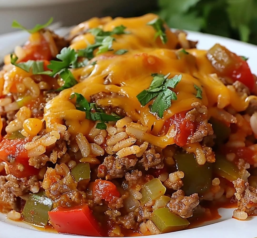 This casserole captures everything you love about stuffed peppers in a warm, cheesy one-pot dish. The savory beef, sweet peppers, and seasoned rice are coated in a tomato-rich sauce and crowned with melted cheese. It’s a weeknight hero: simple to prepare, easy to clean up, and even better as leftovers.